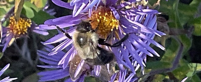 Salutation à Léon, le bourdon qui prône pour l’union et propageons notre passion pour les fleurs ainsi que leurs vertus pour notre santé. Imitons Léon, nourrissons nous de l’Aster de Nouvelle Angleterre, une Asteraceae.
